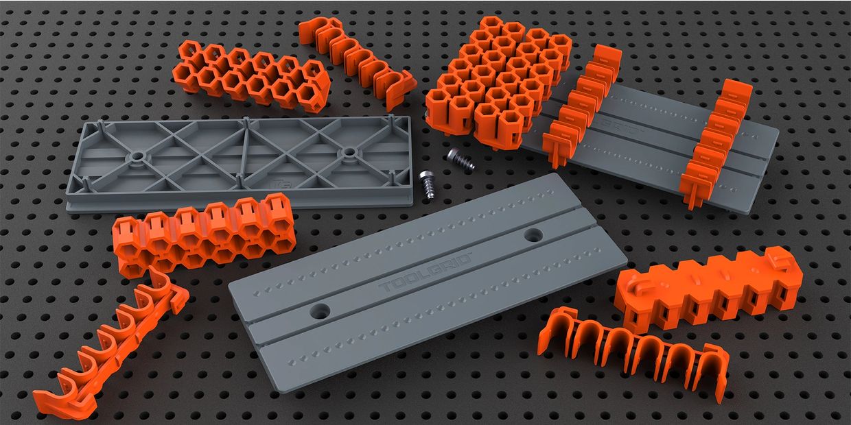 Toolgrid™ Hex Bit Holders securely holds up to sixty 1" to 6" 1/4" hex bits. The hexagon holders hold 1" and 2" bits vertically, the clip holders hold 2" to 6" long bits horizontally. Slide holders along the platform to adjust to any bit size and configuration you require. Mix and match components for the ultimate hex bit layout.